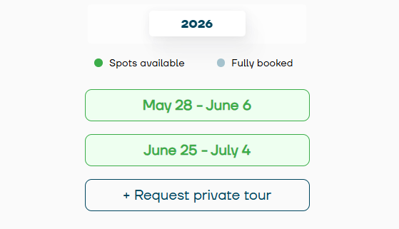 The tour is also available in self-guided: The self-guided tour price is from 1200 euros (*price for sharing rooms)